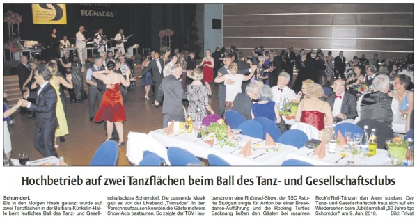 Die Schorndorfer Nachrichten haben am 16. Mai den folgenden kleinen Artikel über unseren Frühlingsball gebracht: