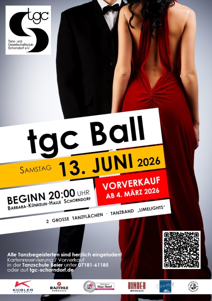 Am Mittwoch, den 04. März 2026, hat der allgemeine Vorverkauf für unseren tgc Ball am 13. Juni 2026 in der Barbara-Künkelin-Halle in Schorndorf begonnen.