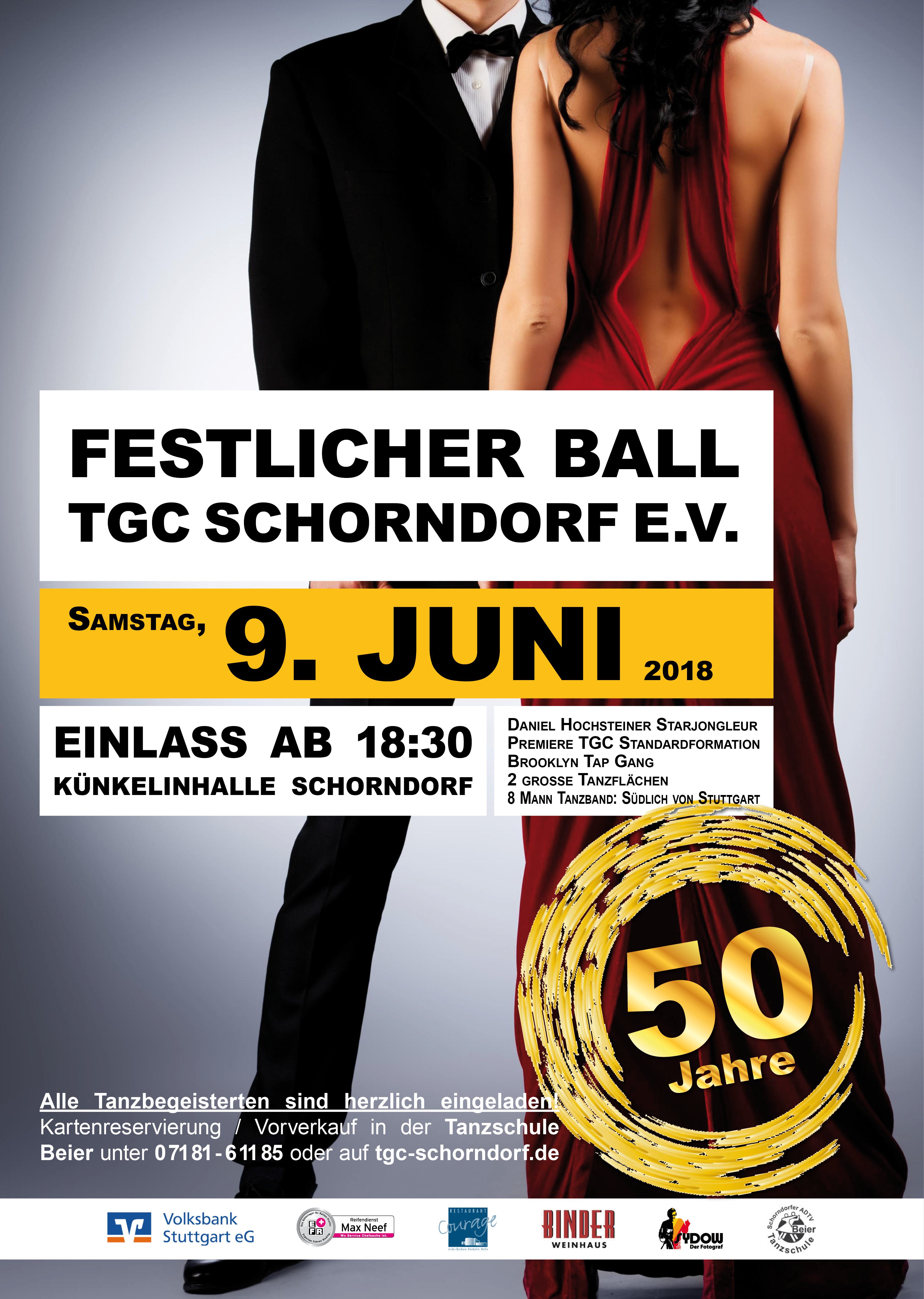 Auch unseren Sponsoren und Werbepartnern möchten wir schon an dieser Stelle ganz herzlich danken: der Schorndorfer ADTV Tanzschule Beier, dem Reifendienst Max Neef, dem Weinhaus Binder, dem Modehaus Raithle, dem Blumenhaus La Fleur und dem Restaurant Courage.